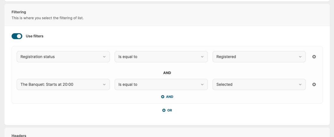 Tip: Tip! Most often you would like to add "Registration status" is equal to "Registered" to your filter.