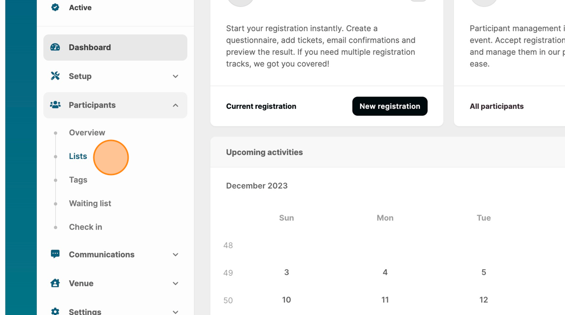 7. The overview of Participant lists will show the number of matches in each list. Lists can be downloaded as an Excel file by clicking the Export icon.