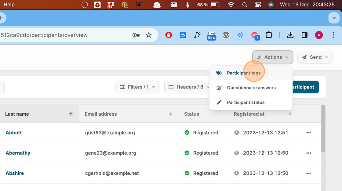 3. One way of adding tags to multiple participants would be to first select them in Participants > Overview.