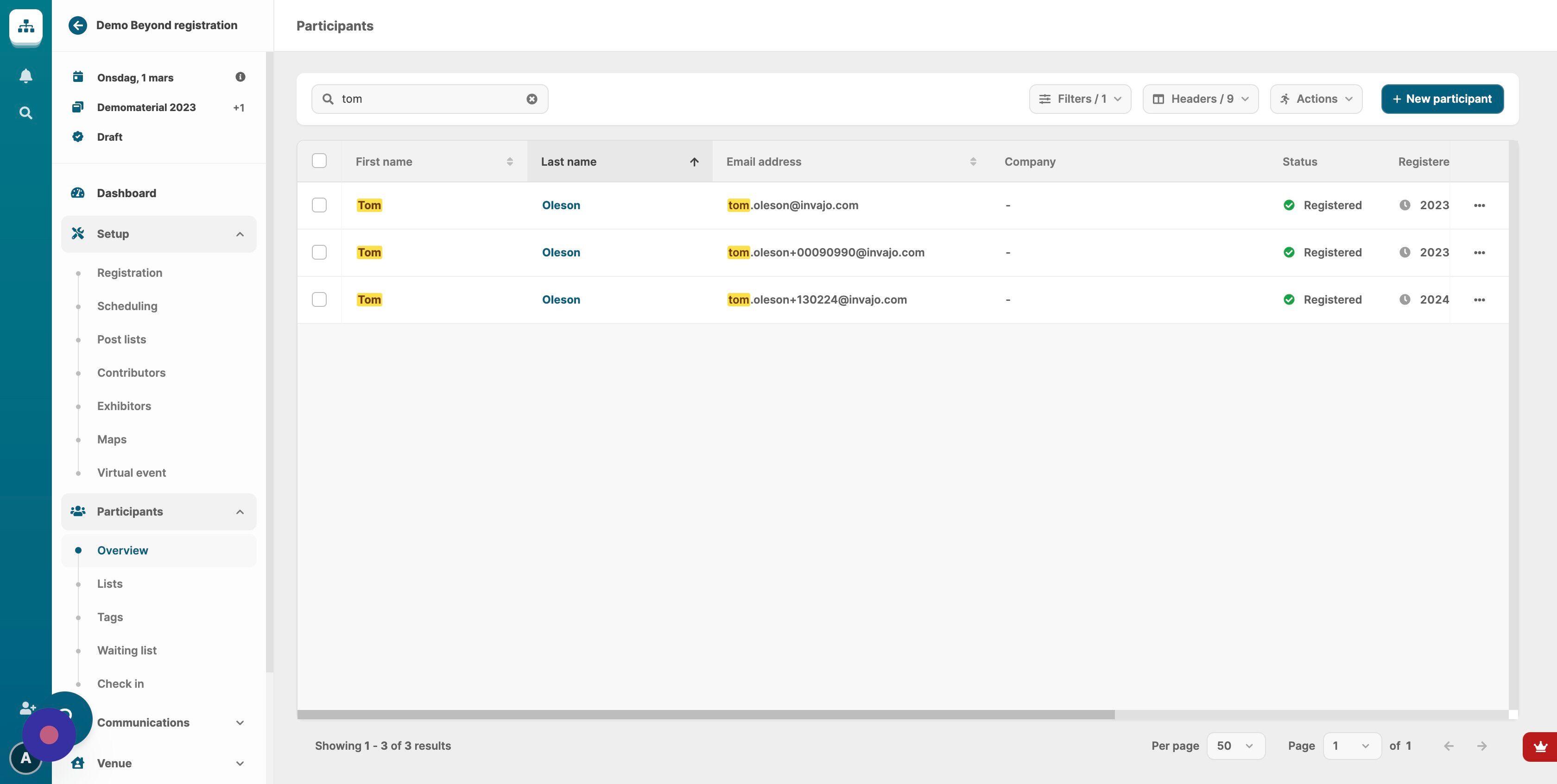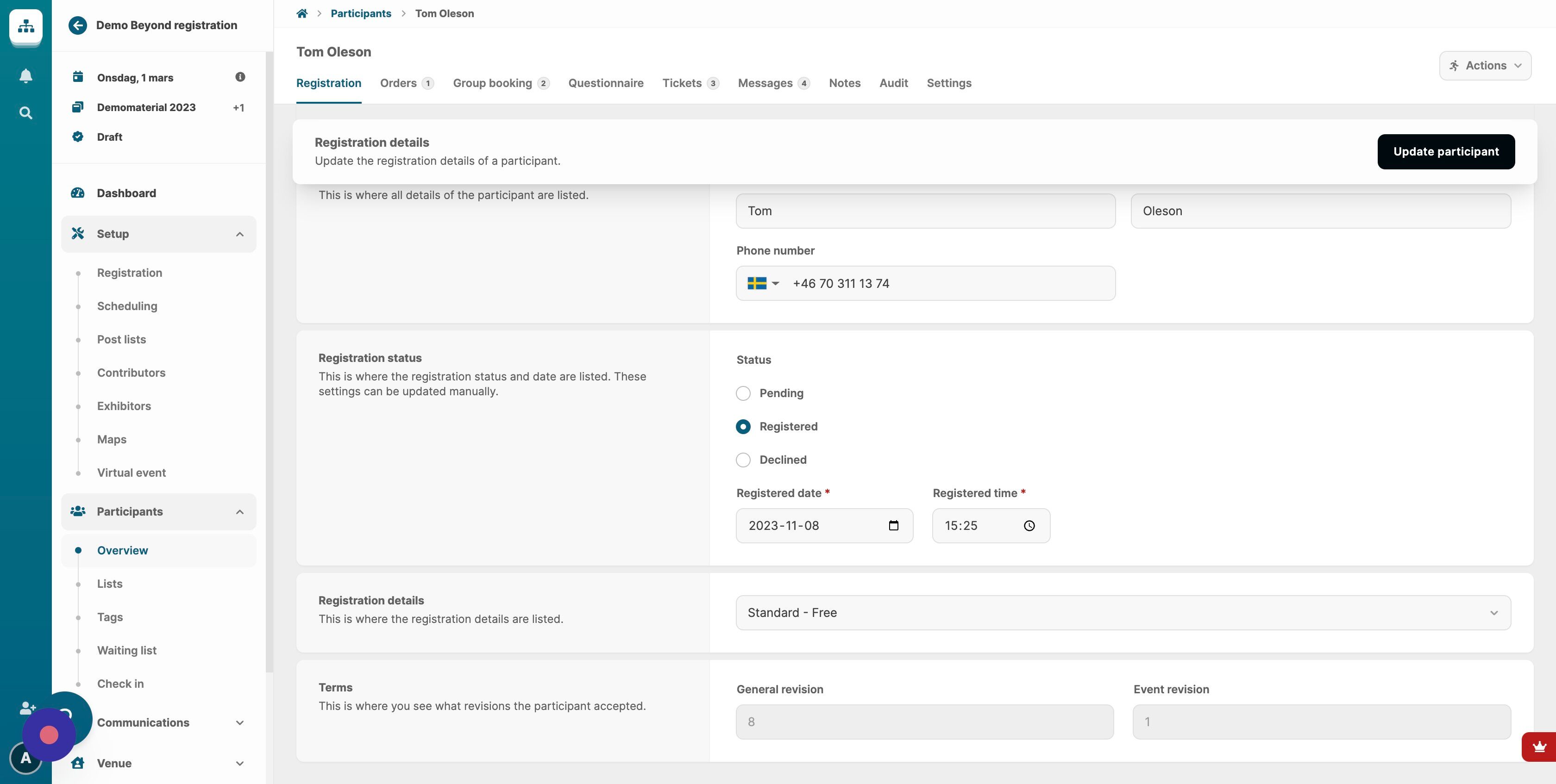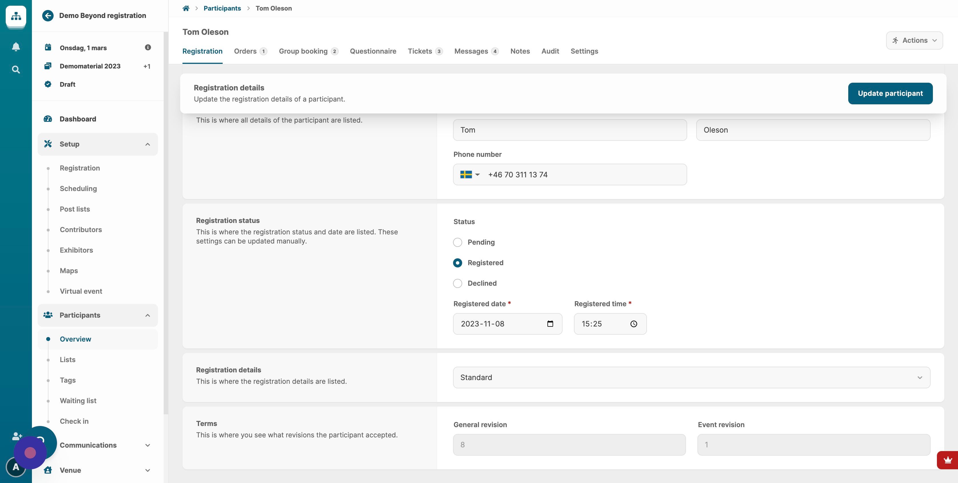 2. Go to Participants, followed by overview. And search for the participant you want to update.