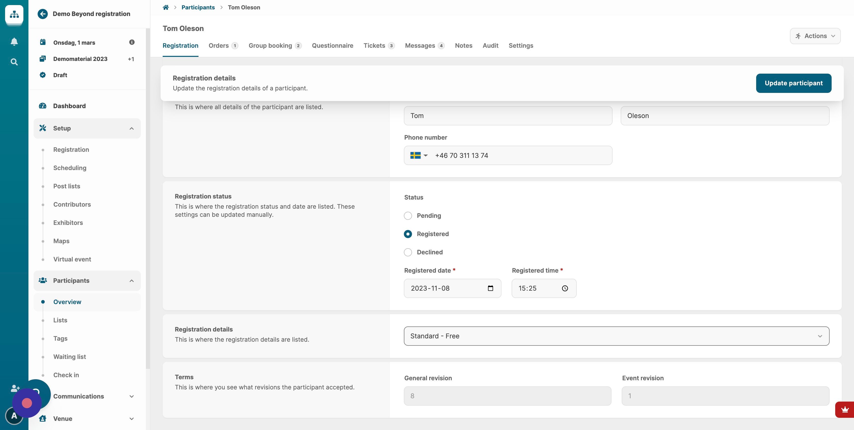 5. Click on the dropdown list of registration details, and choose the track you would like to place the participant in.