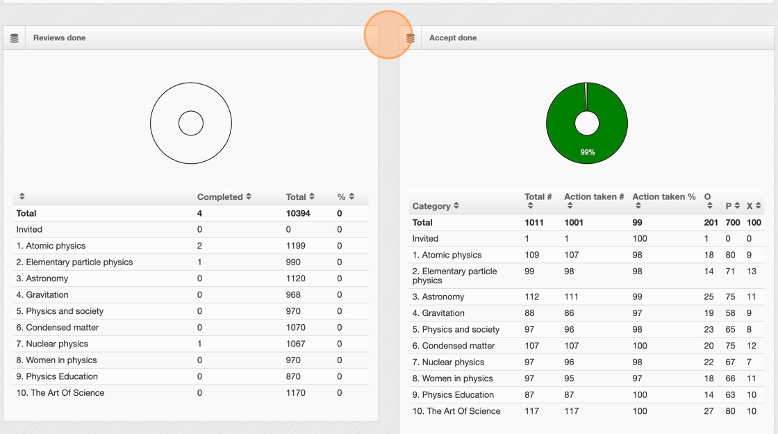 5. The dashboard also displays the number of accepted abstracts. If presentation types are used, it further breaks down the accepted counts by each presentation type.