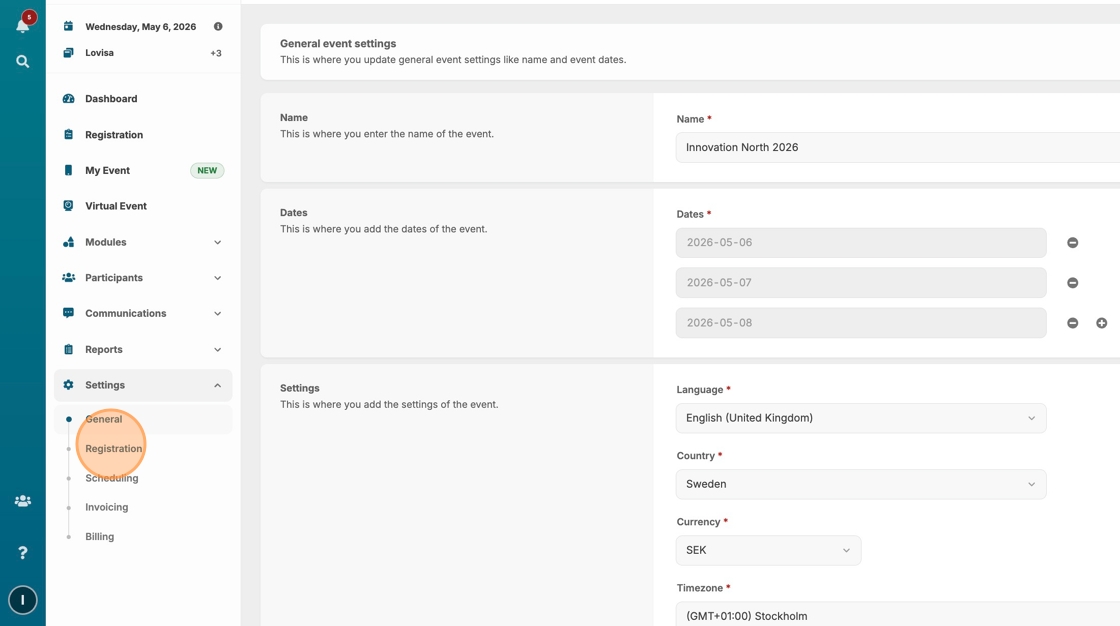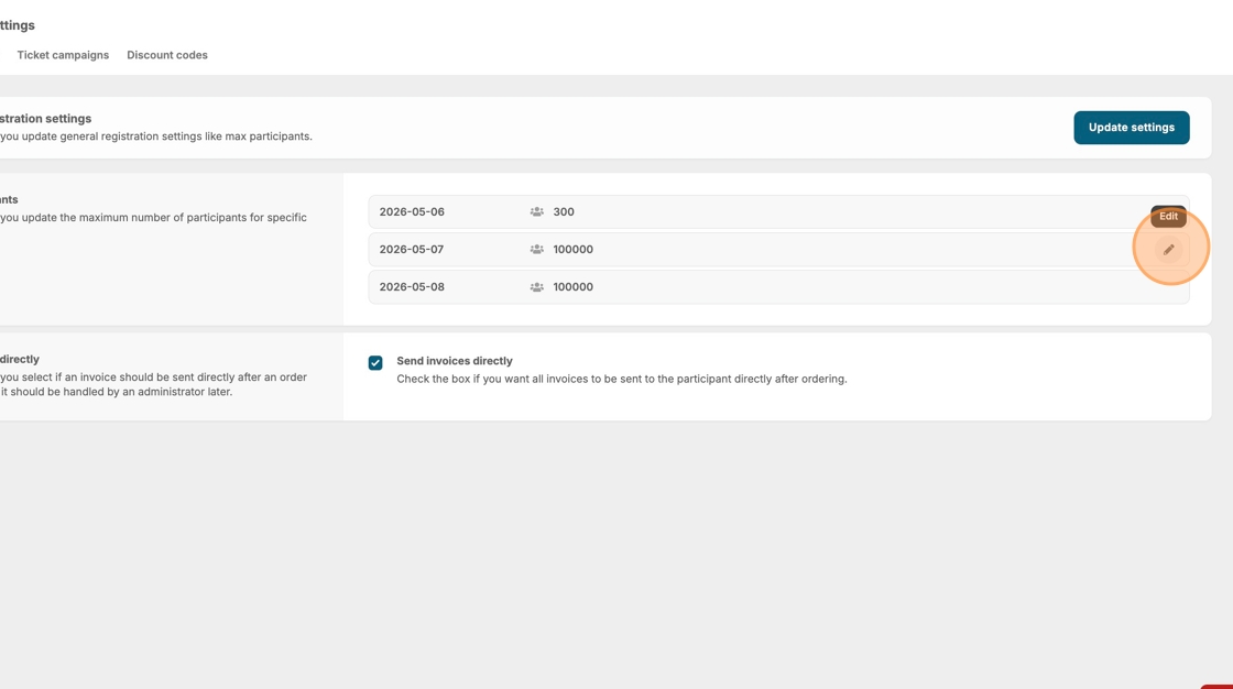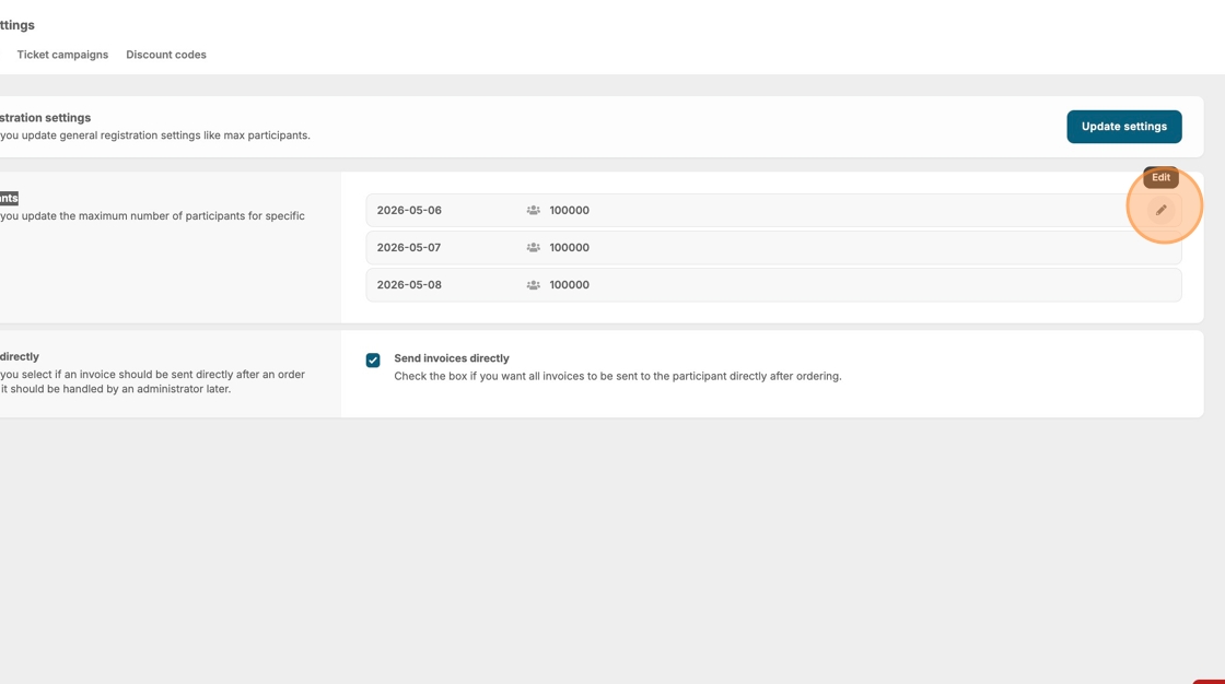 6. If your event duration is over several dates, you can alter the max of each day by following the same procedure.