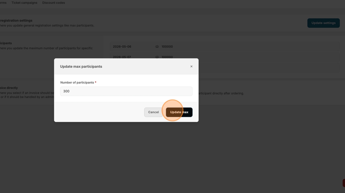 4. Adjust maximum number of participants.