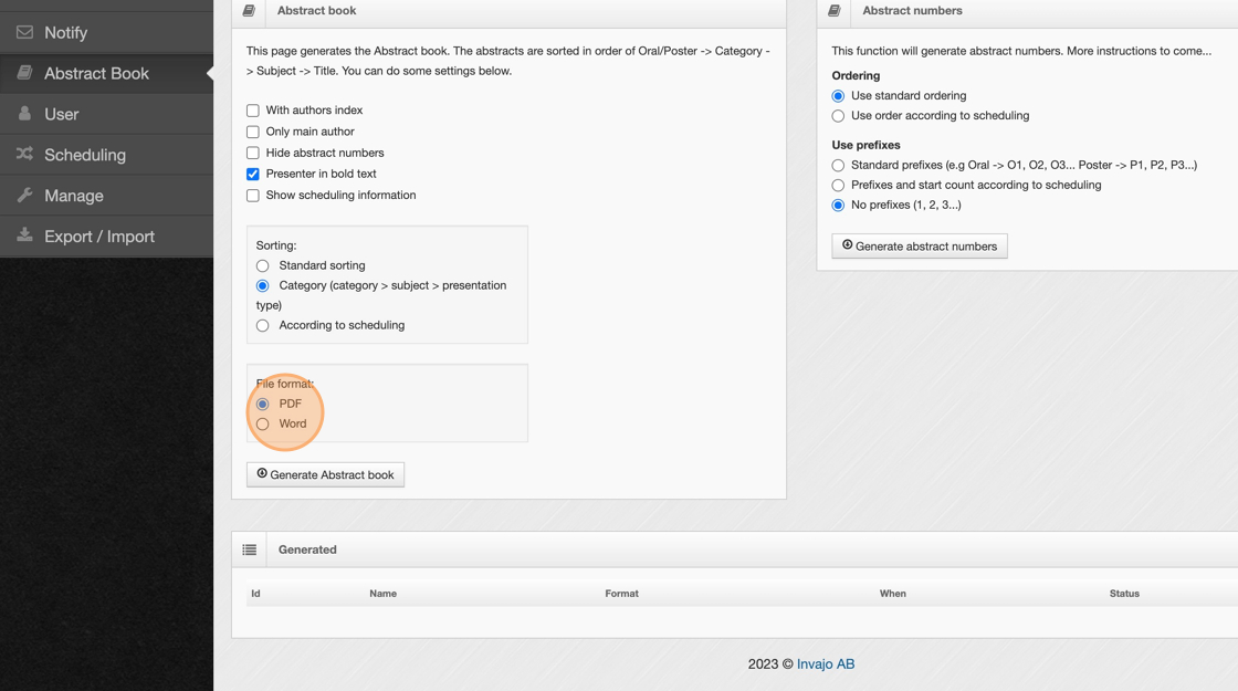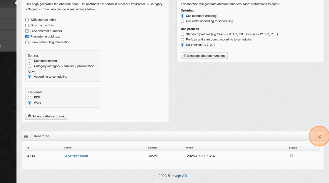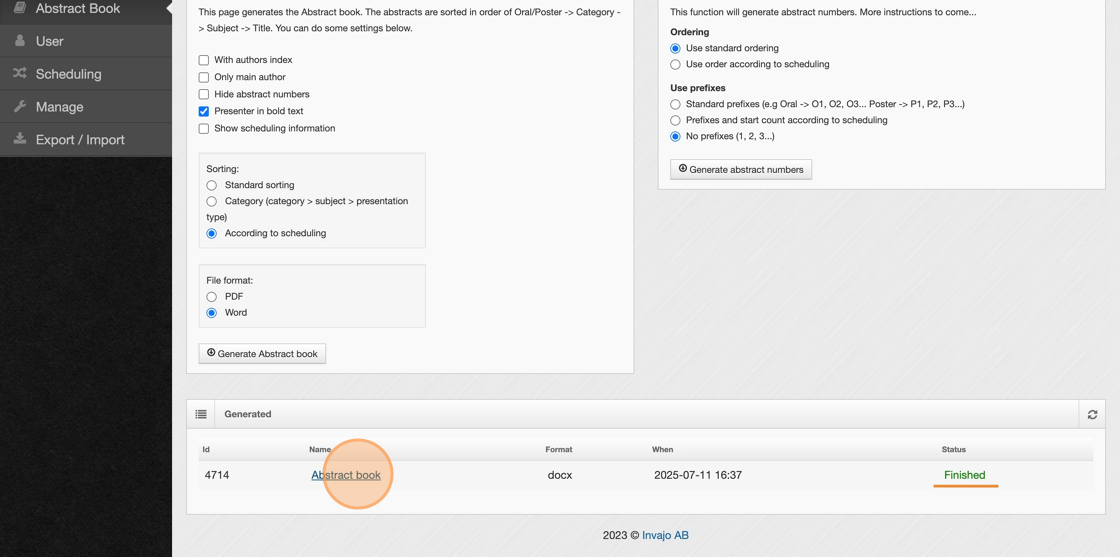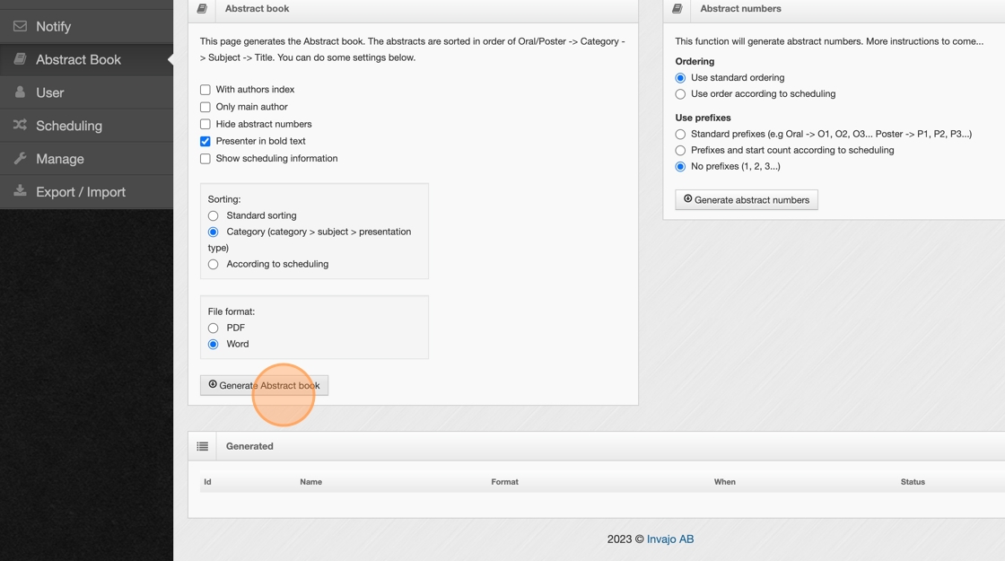 5. Click "Generate Abstract book"