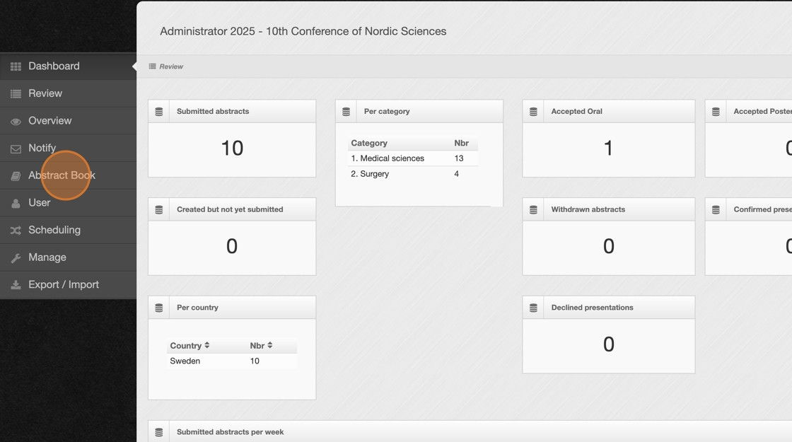 1. Once logged into your admin account, navigate to "Abstract Book".