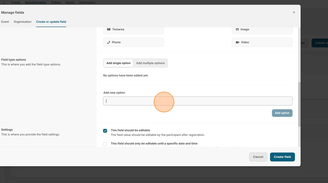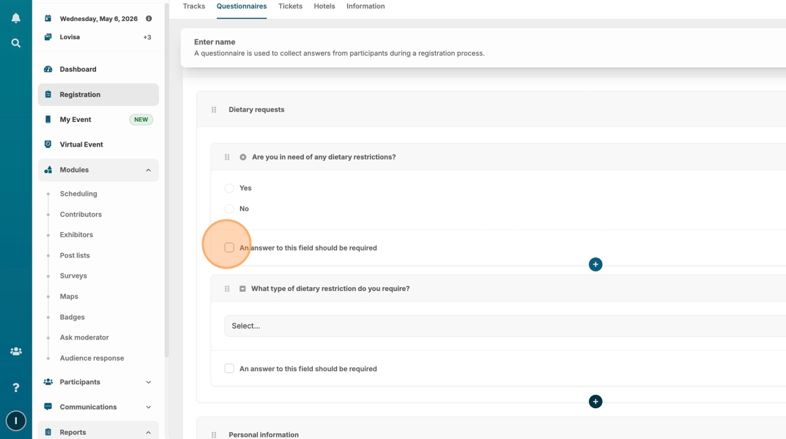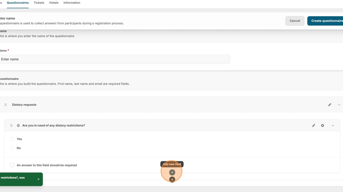 This guide provides a step-by-step guide for creating a questionnaire, making it easy for users to gather valuable information during each registration process. By following these steps, users can customize their questionnaires with various field types and options, ensuring they meet specific needs.