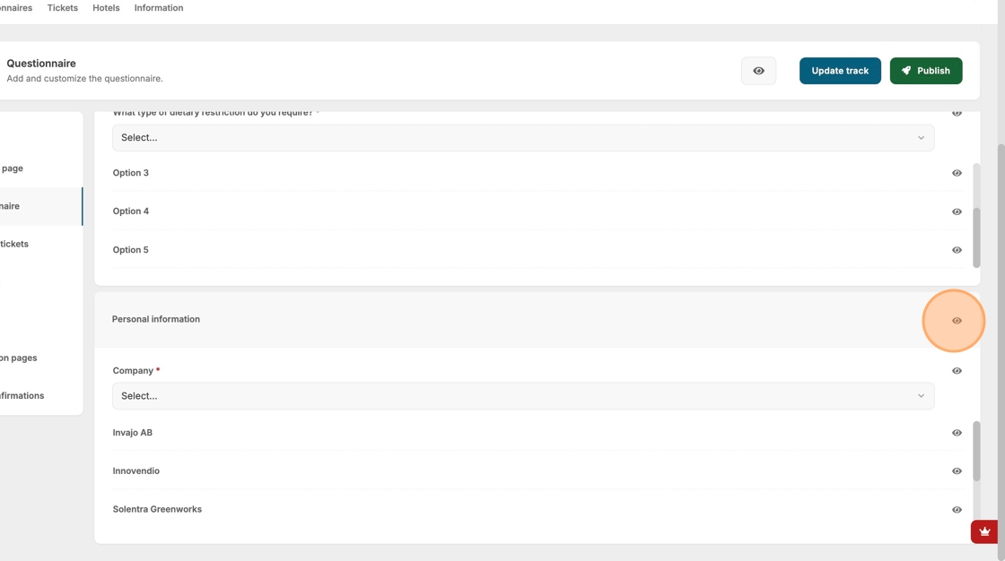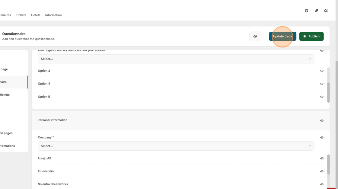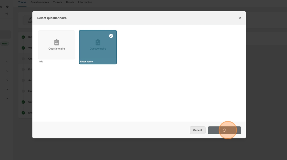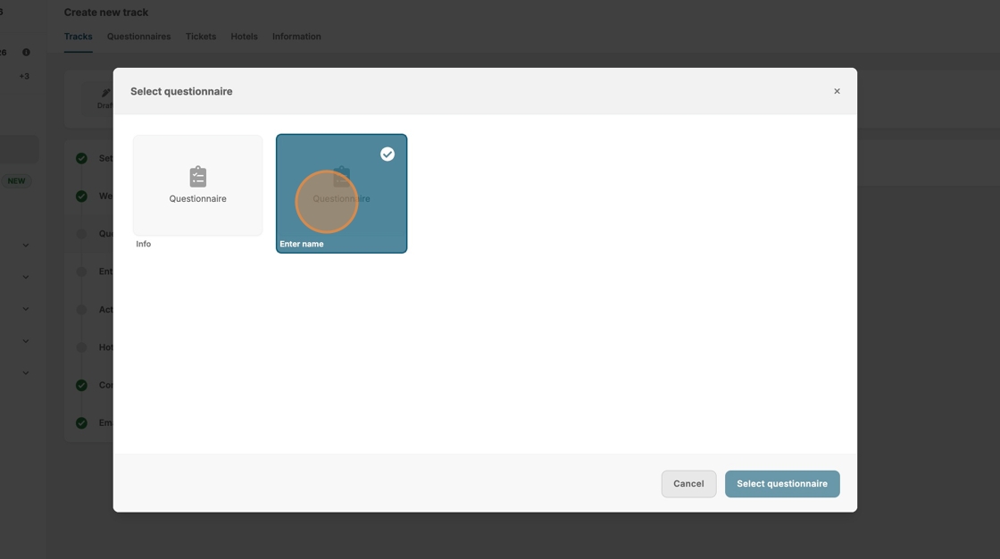 8. If you have already created questions for your event, they will be available for selection.