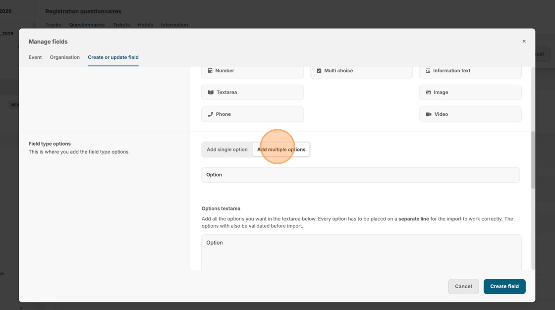 14. Click "Add multiple options" if you have many selectable options for a smoother input.