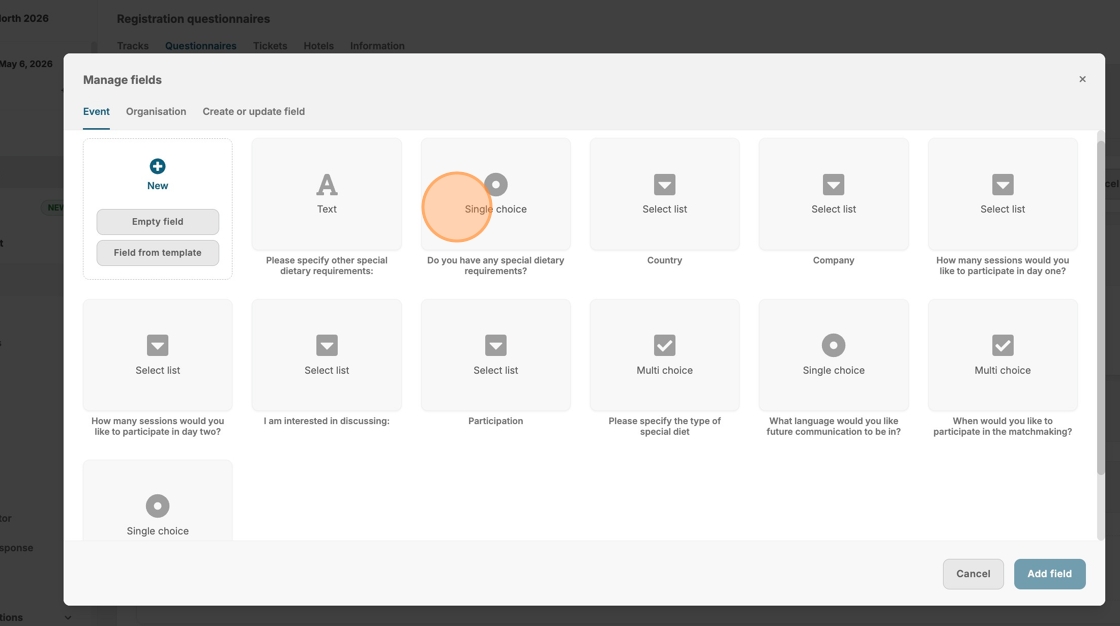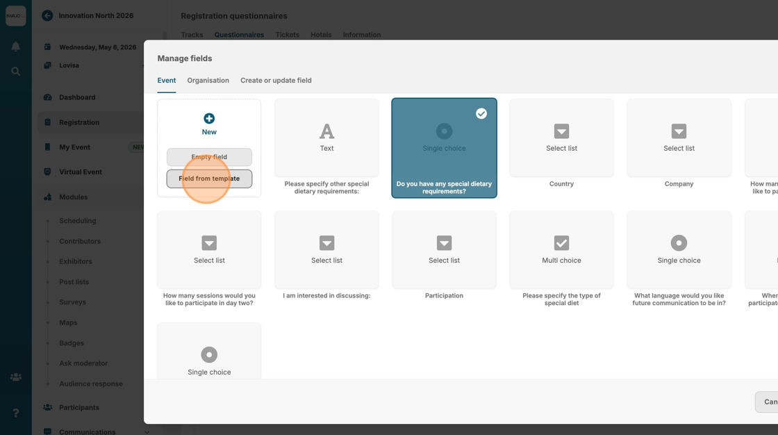 9. Click "Field from template" if you have organisation templates ready.