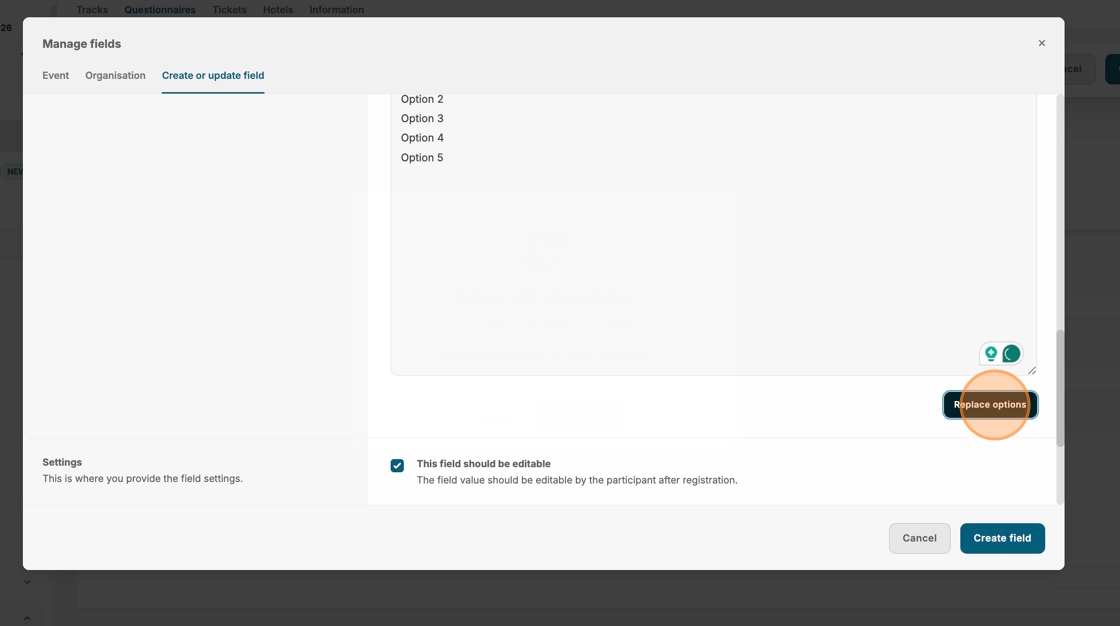 16. Click "Add options". Note: if you have already added an option, the button will be named "Replace options".