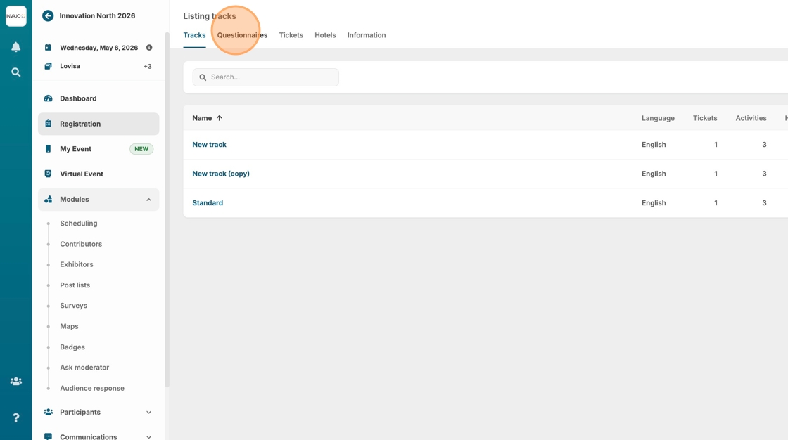 26. Now let's add the questionnaire to our registration track.