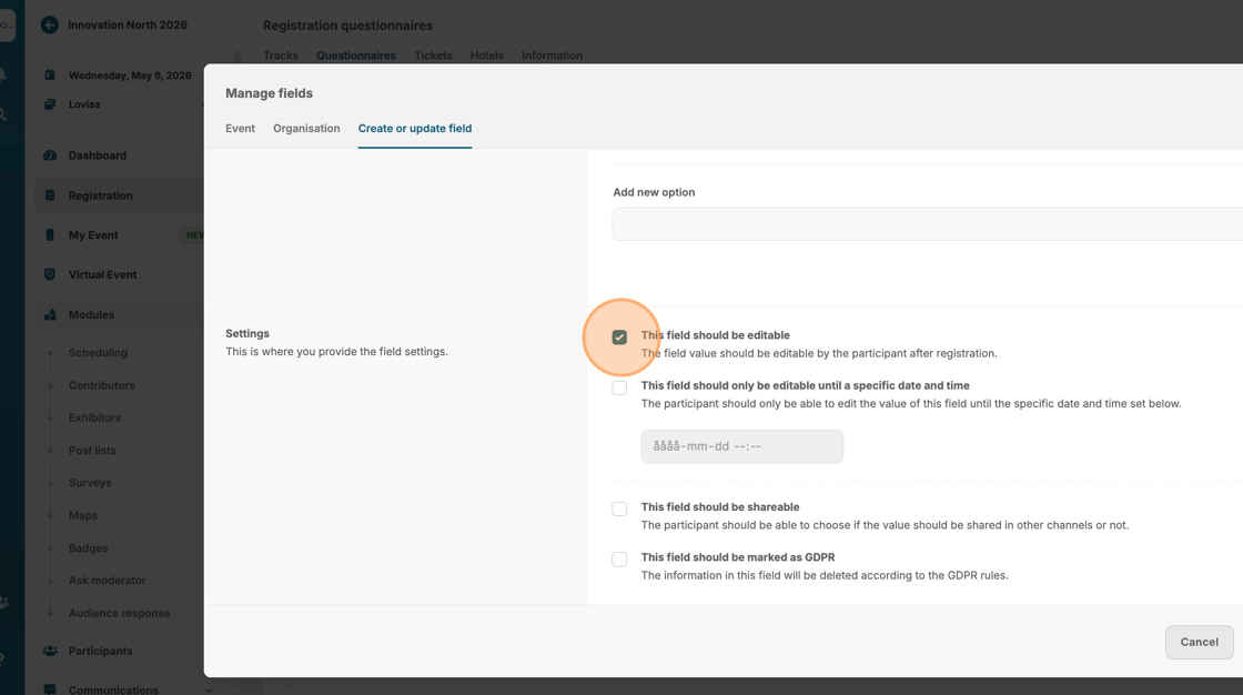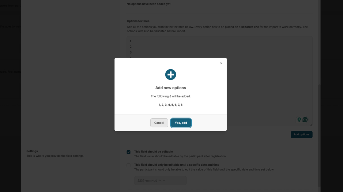 18. Choose if the participants should be able to edit their responses after registration.