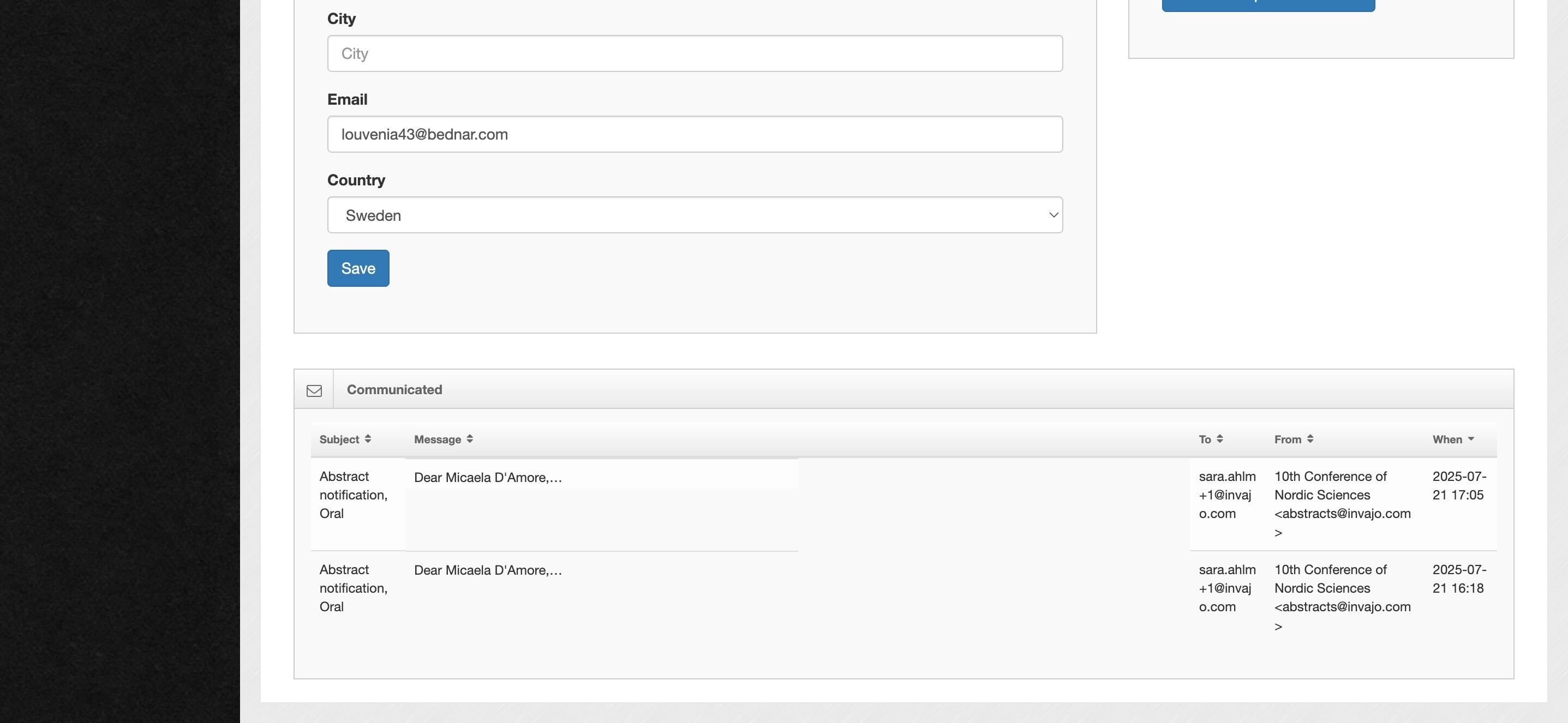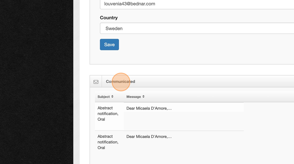 7. Both methods will display the submitter's email log under "Communicated" at the bottom of the page.