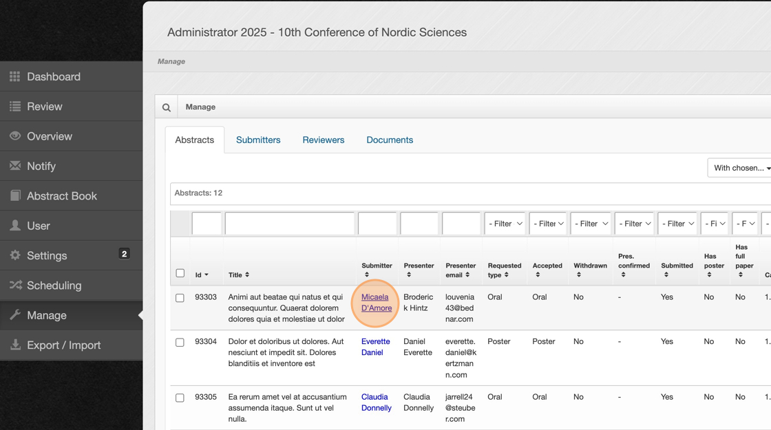4. You can either click on the submitter’s name on the abstract page or use another method described below.