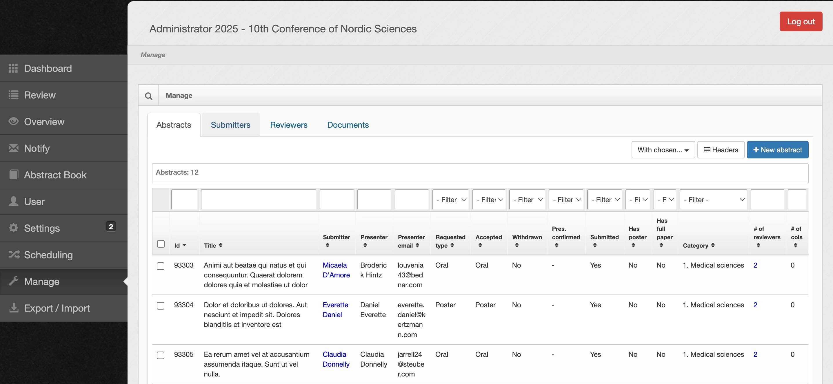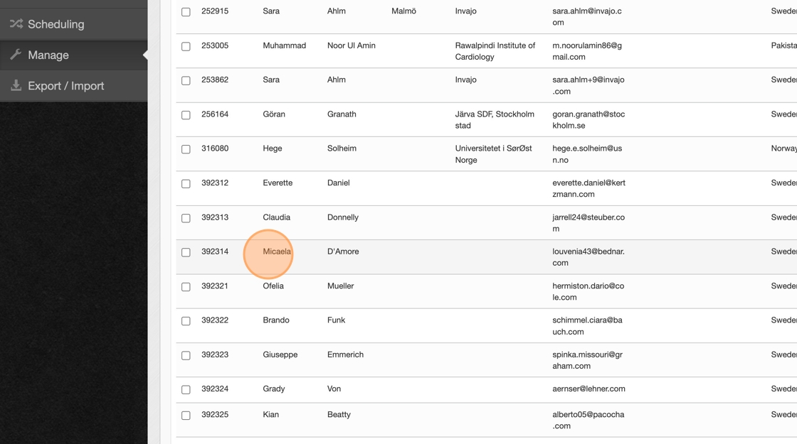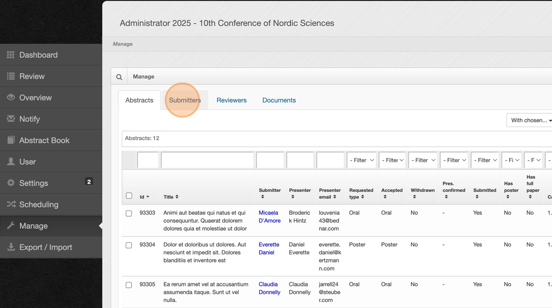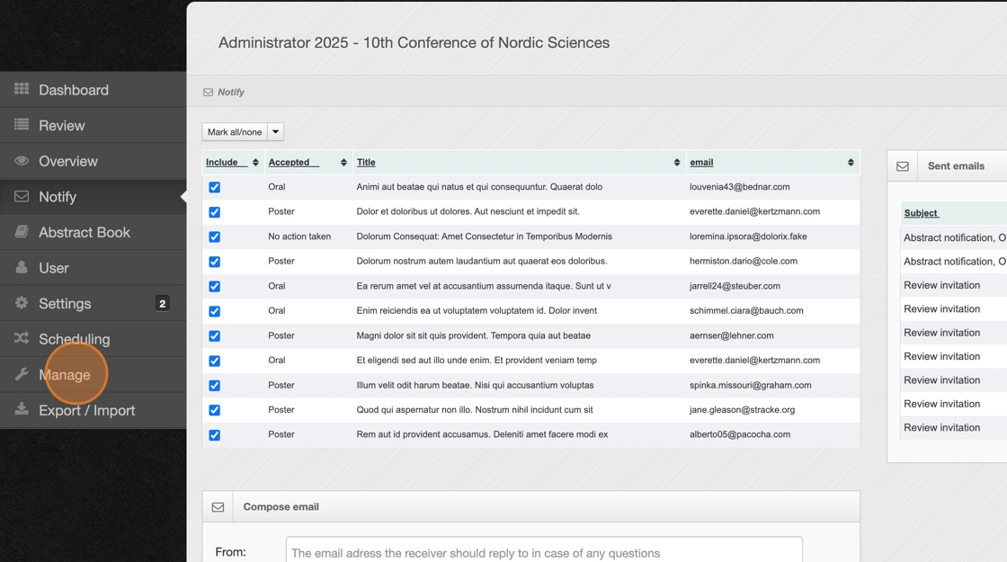 3. To view the email log for a specific submitter, navigate to "Manage".