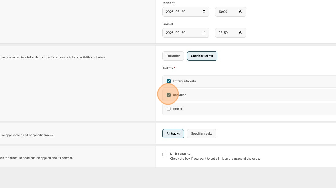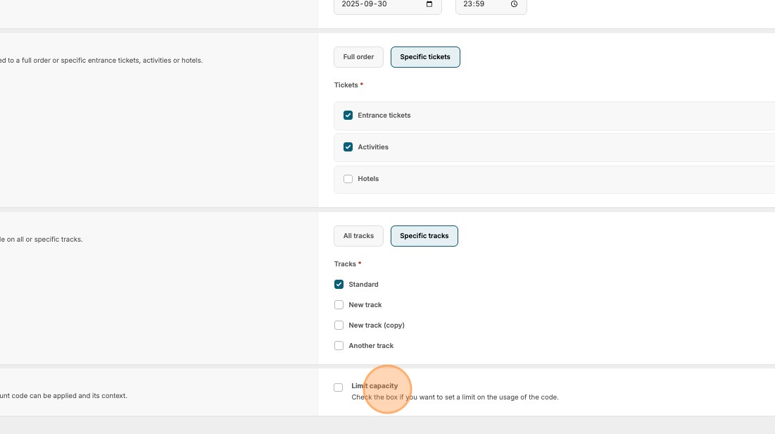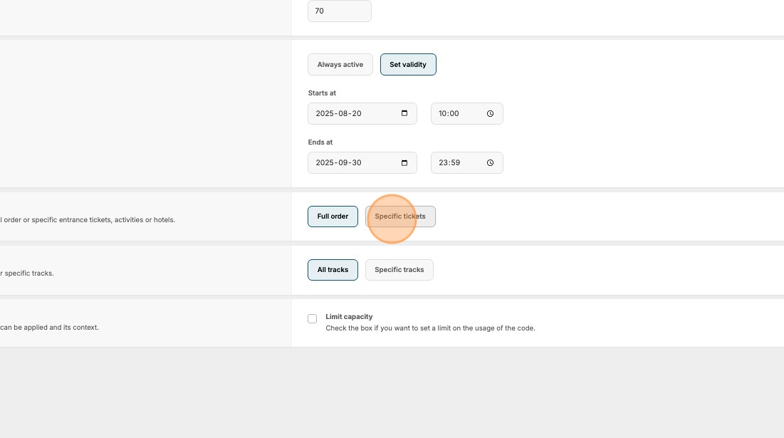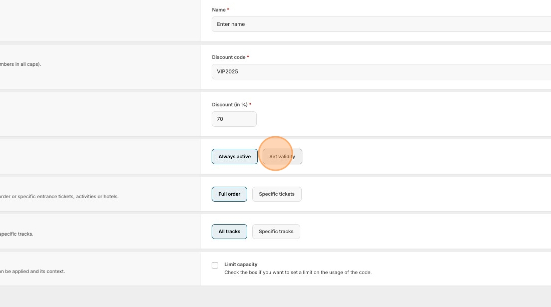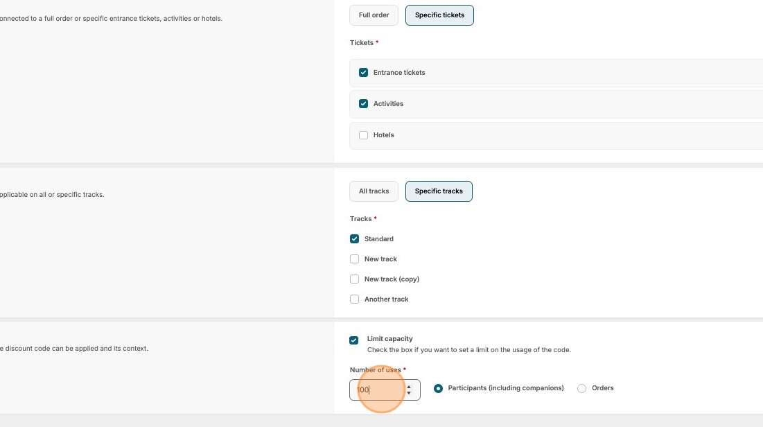 13. Click here if you only want the discount code to be valid for specific tickets.
