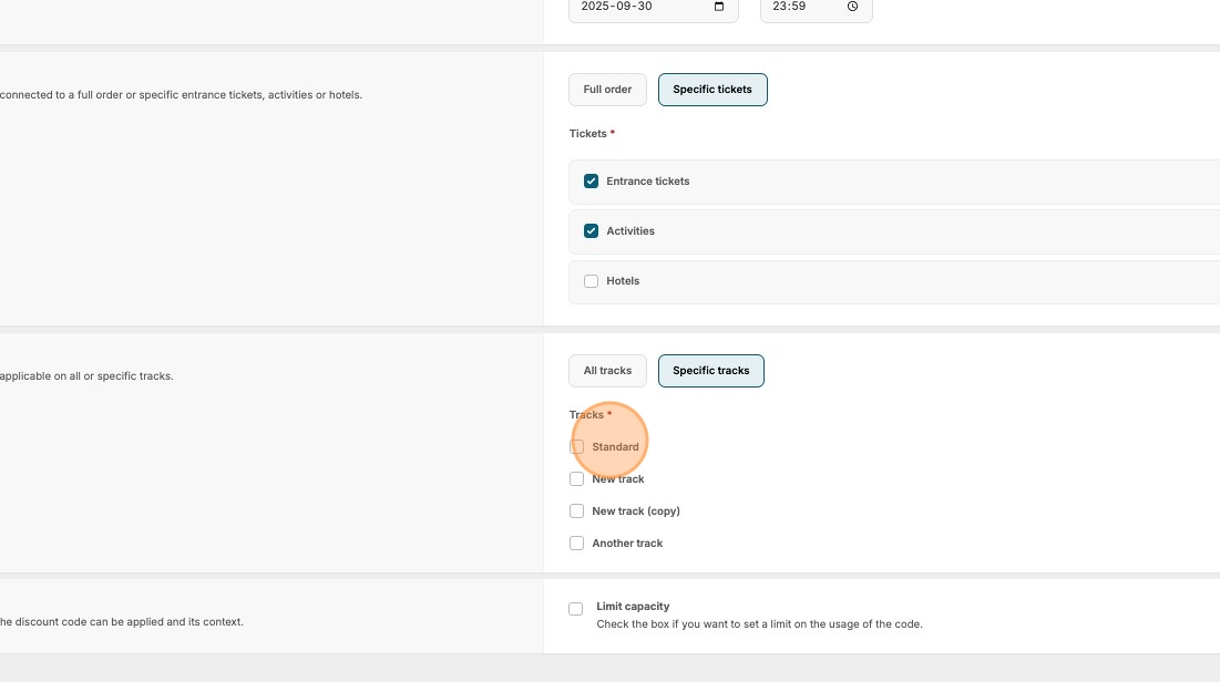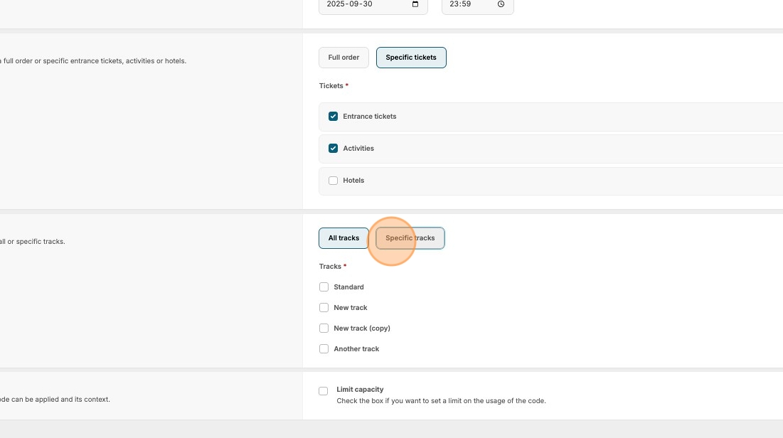 15. Click "Specific tracks" if you only want the discount code to affect specific tracks.
