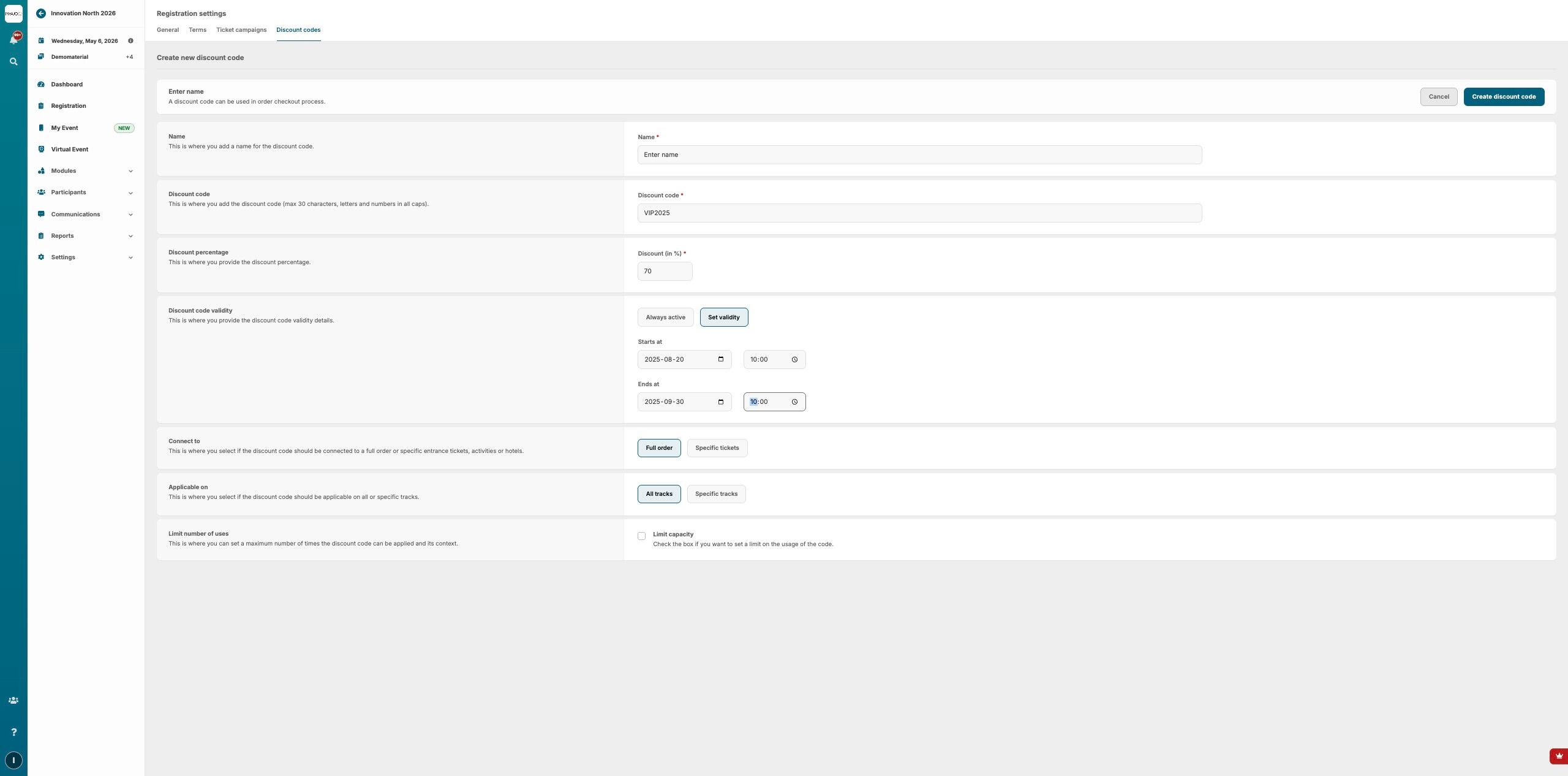 This guide walks you through creating discount codes for your events - a great way to attract attendees and boost ticket sales by offering special pricing to selected groups. It covers all essential steps, from setting up a code to customizing its validity period and usage limits.