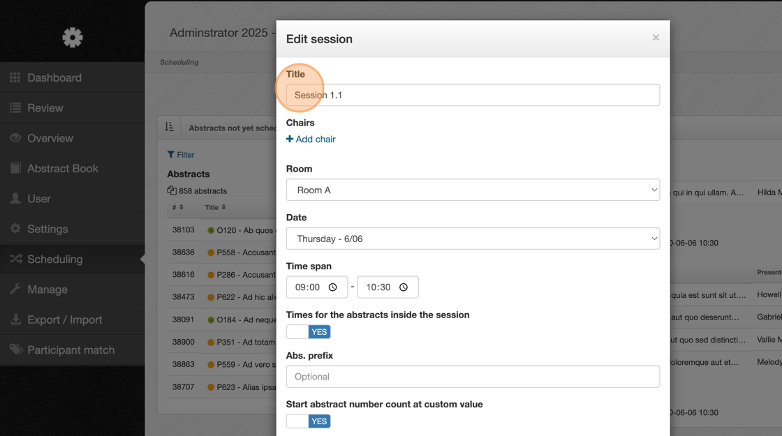 This guide shows you how to easily edit session titles in the abstract system to keep your schedule up to date.