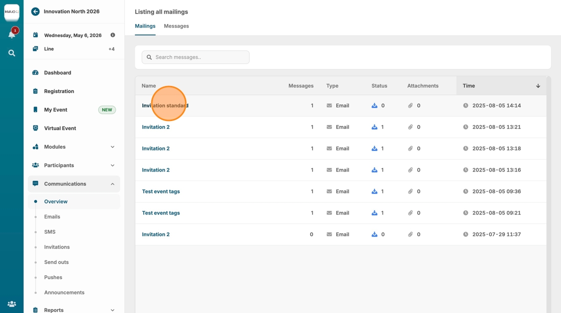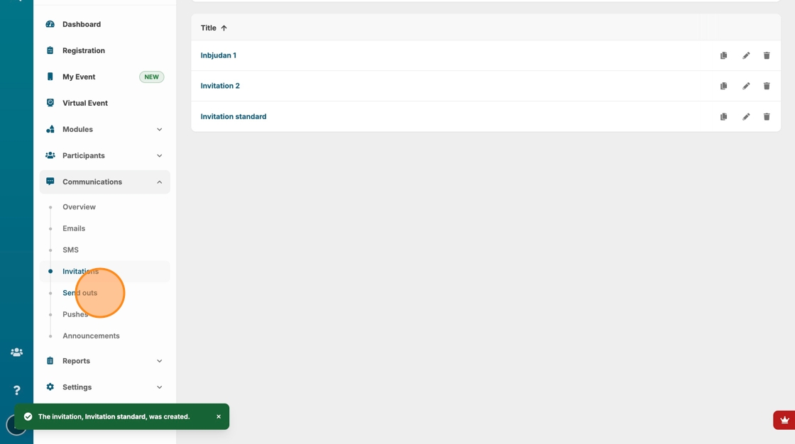 31. Click on the invitation you just sent, in this case, "Invitation standard"